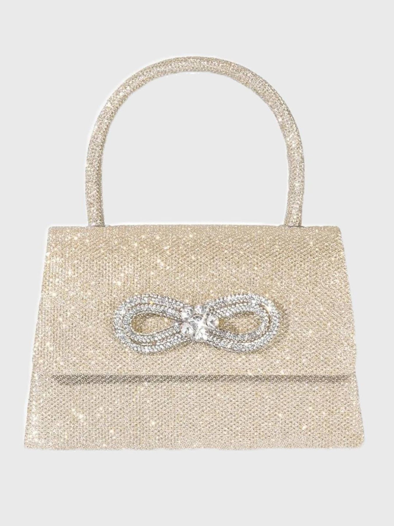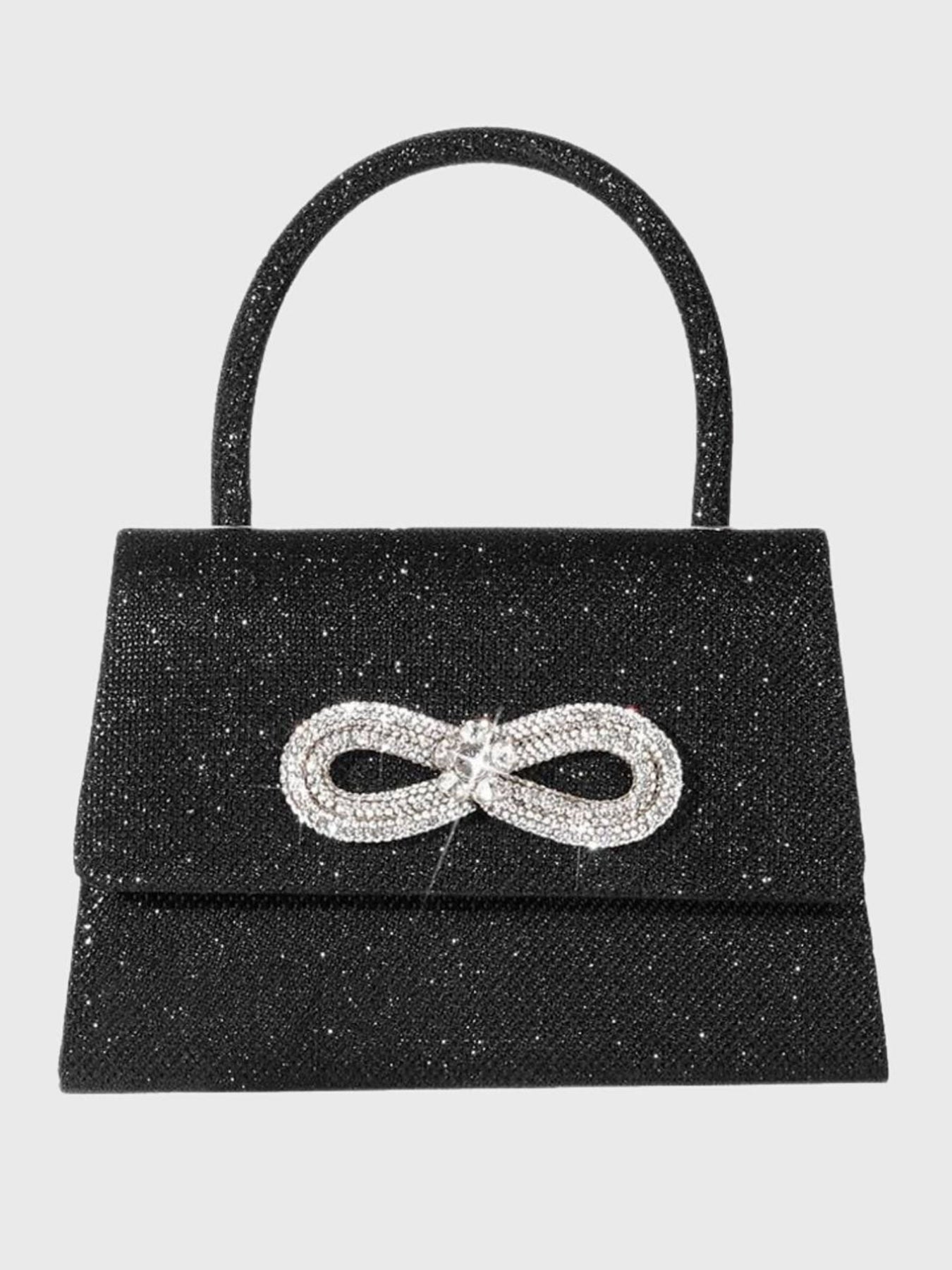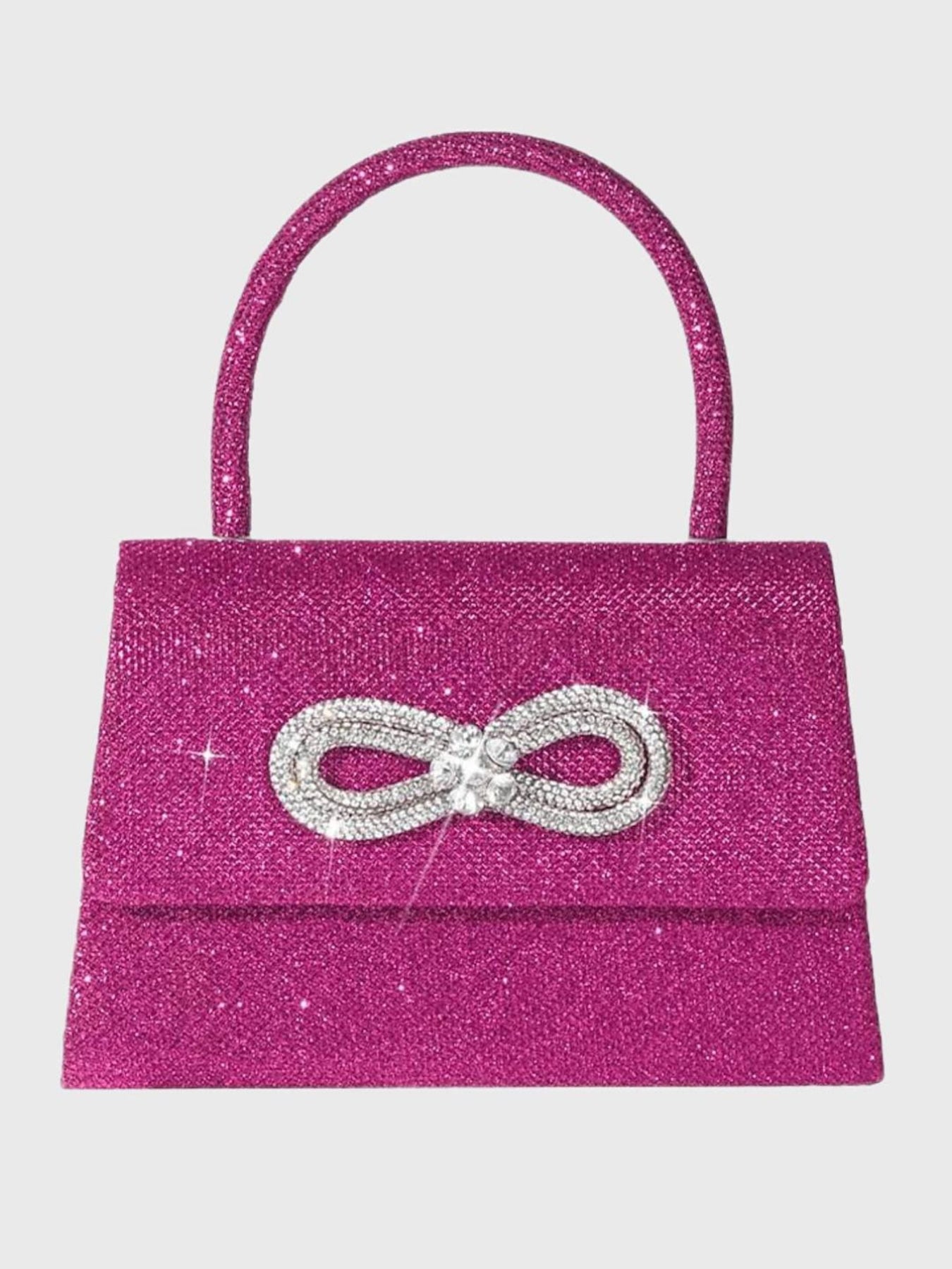 MON1341225Sac à Main Rose Pailleté avec Nœud en Strass