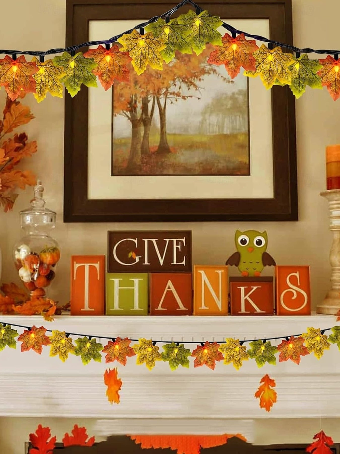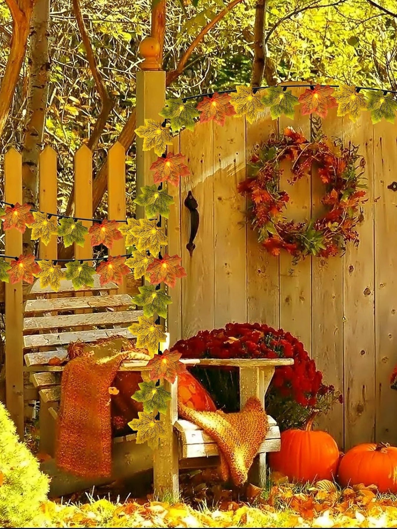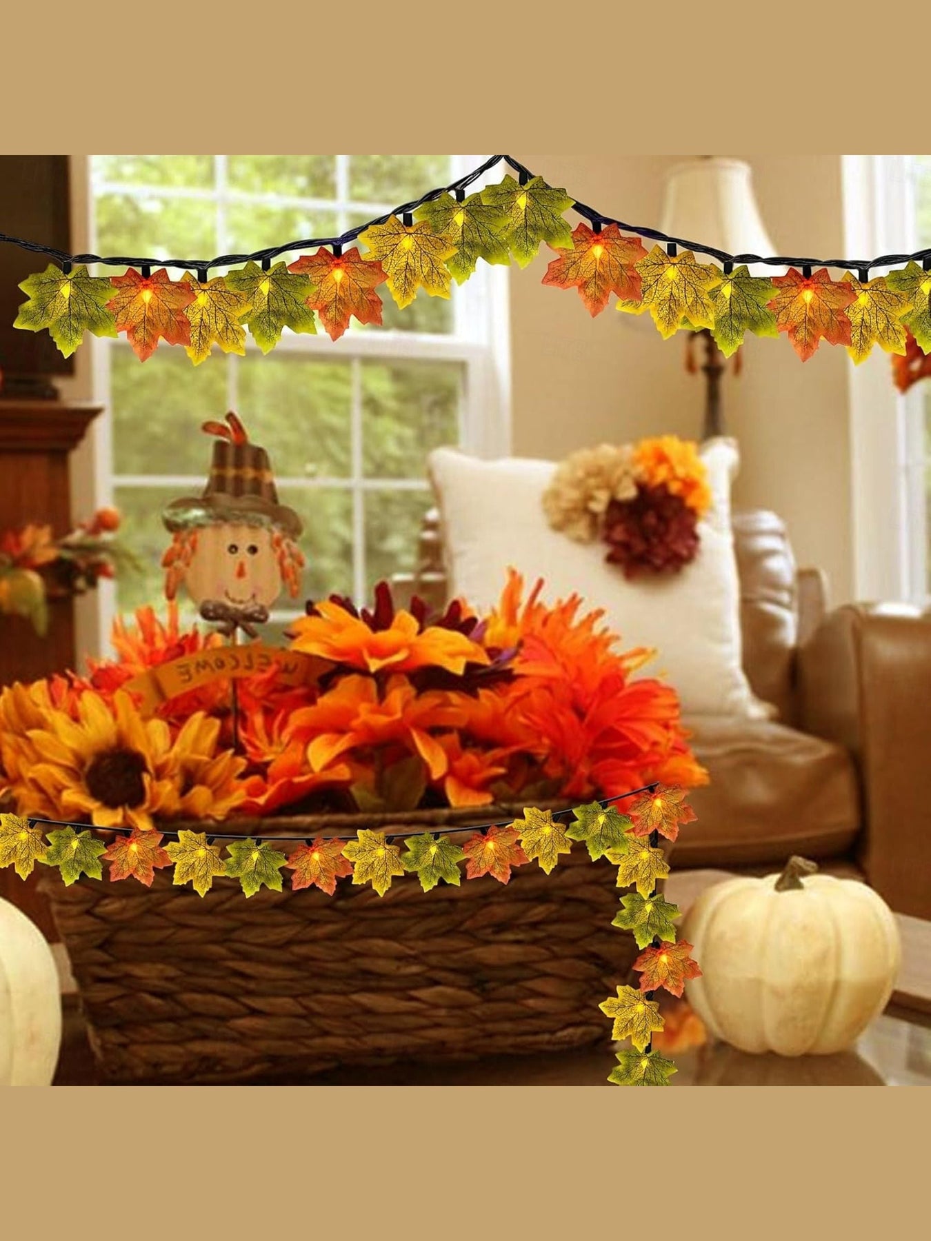 Guirlande Lumineuse D'Ambiance en Feuille D'Érable Artificielle pour Halloween/Automne