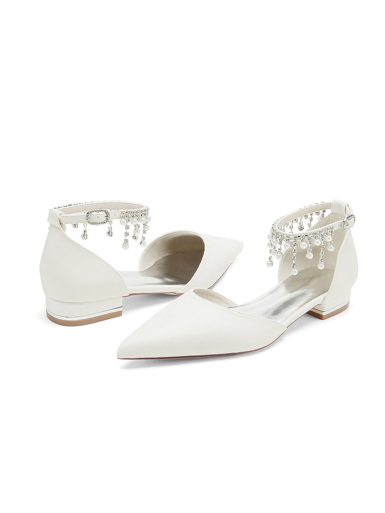Chaussures de Mariage pour Femmes, Chaussures de Demoiselle D'Honneur à Talons Bas et Bout Pointu avec Strass