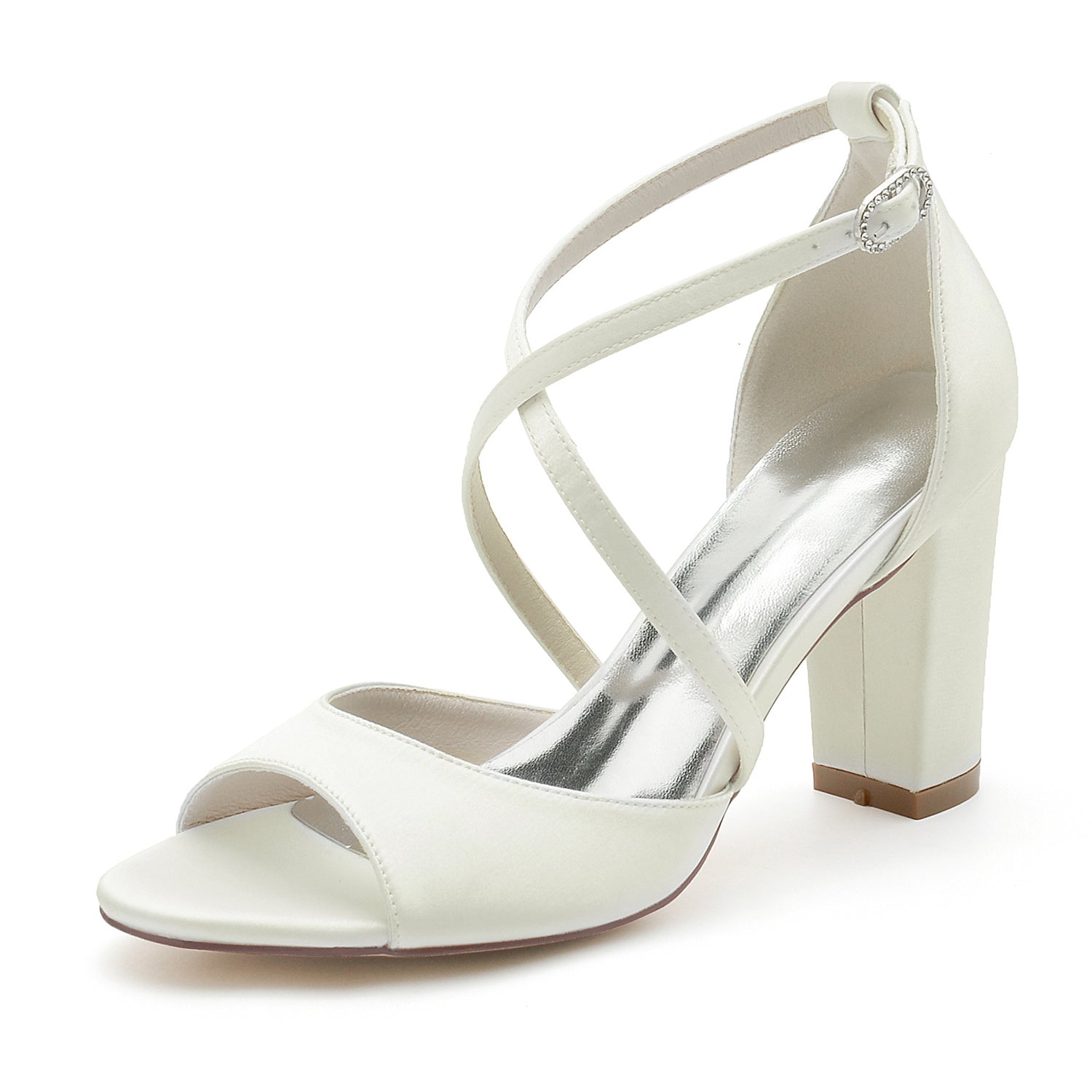 Chaussures de Mariage pour Femmes à Lanières Croisées et à Bout Ouvert avec Boucle et Boucle Minimalistes