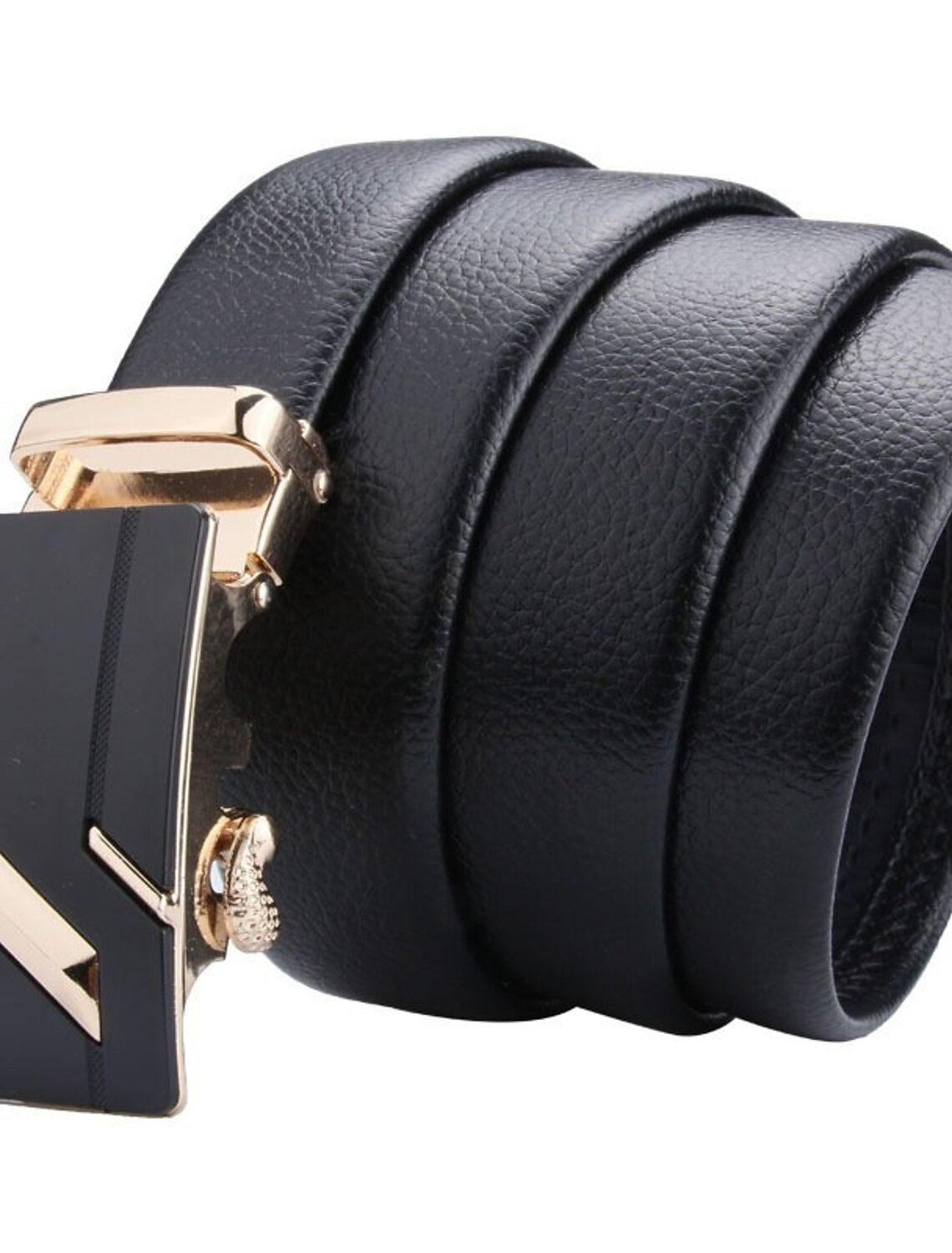 MON612062 Ceinture à Cliquet En Cuir Pu Noir Pour Homme, à Porter Au Quotidien
