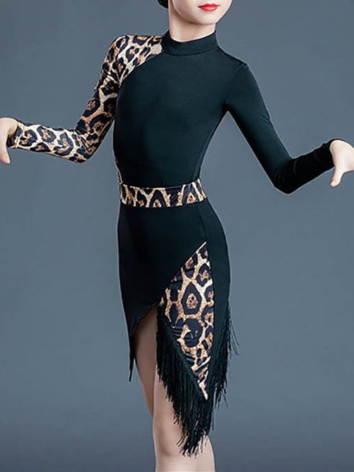Vêtements de Danse pour Enfants, Impression de Pompons, Col Haut, Manches Longues, Performance pour Filles, Polyester