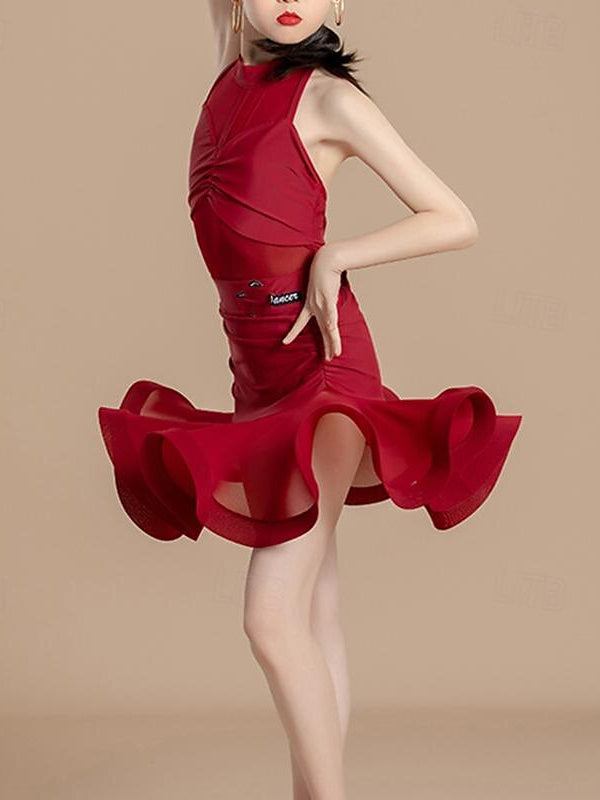 MON4041615W Vêtements de Danse Latine pour Enfants, Col Haut, Sans Manches, Épissage, Performance et Lycra pour Filles