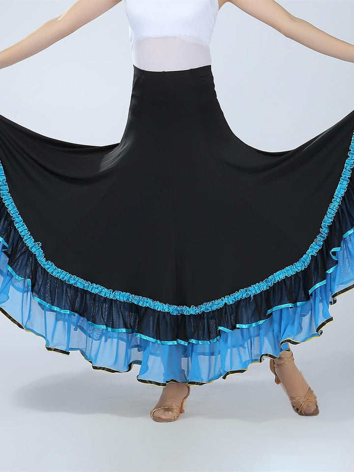 Vêtements de Danse pour Femmes Jupes de Danse de Salon à Volants Épissage Entraînement de Performance pour Femmes Haute Teneur en Polyester