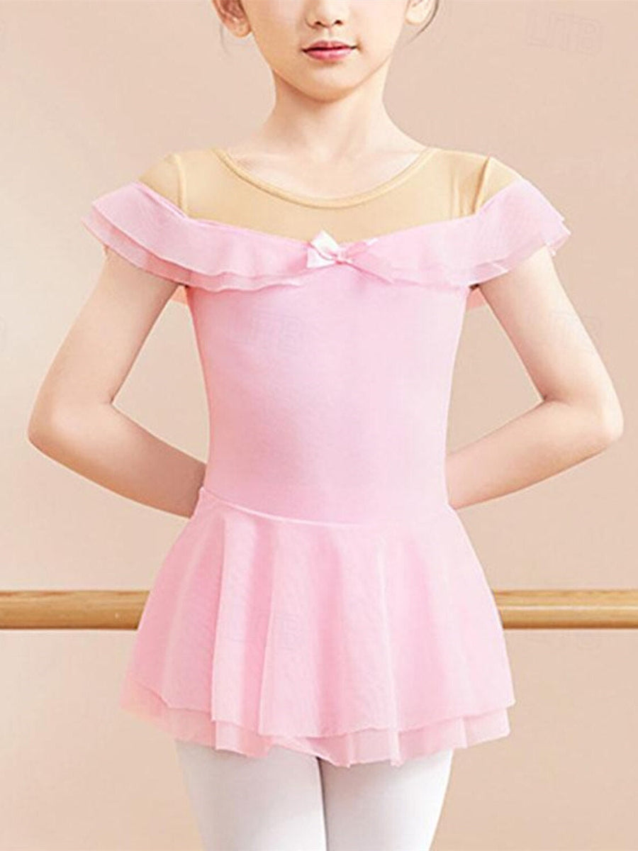 Vêtements de Danse pour Enfants, Mélange de Coton et de Performance à Manches Courtes pour Filles, Couleur Unie