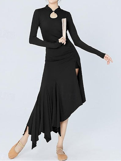 Vêtements de Danse pour Femmes Danse Latine Robe de Danse de Salon Couleur Pure Entraînement pour Femmes Manches Longues