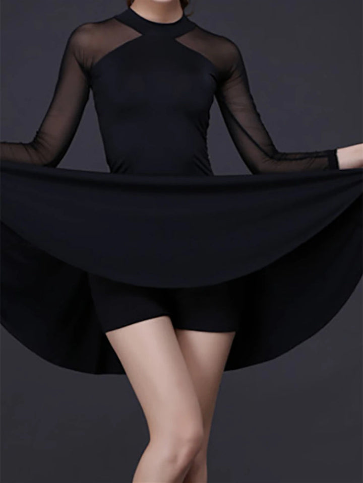 Vêtements de Danse pour Femmes Robe de Danse Latine Chinlon Organza Performance pour Femmes à Manches Longues