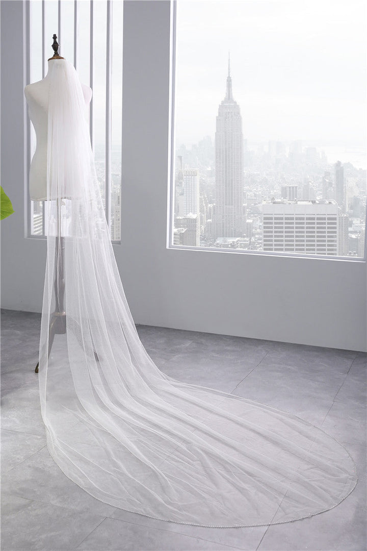 Voiles de Mariage Cathédrale à Un Niveau avec Bordure Coupée et Fausse Perle