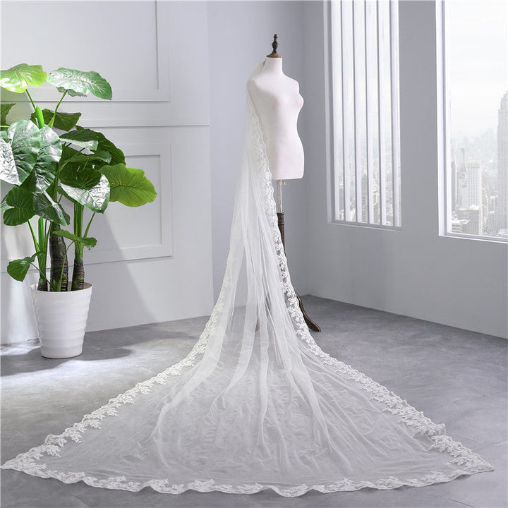 Voile de Mariage en Dentelle à Un Niveau Extra Large de 3 M de Long avec Appliques