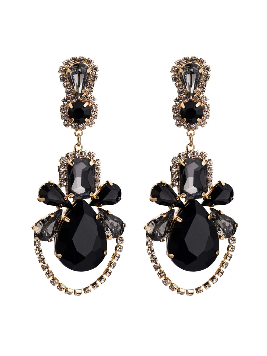 Boucles D'Oreilles en Forme de Goutte D'Eau Exagérée avec Strass en Verre Tendance