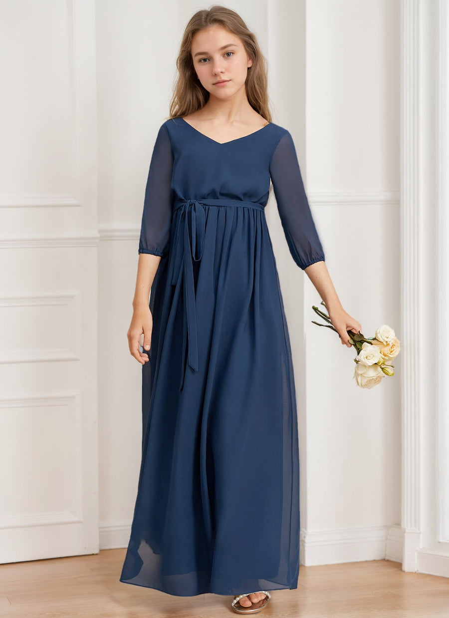 Robe de Demoiselle D'Honneur Junior Fille Coupe A-Line/Princess Col en V Manches 3/4 avec Ceinture