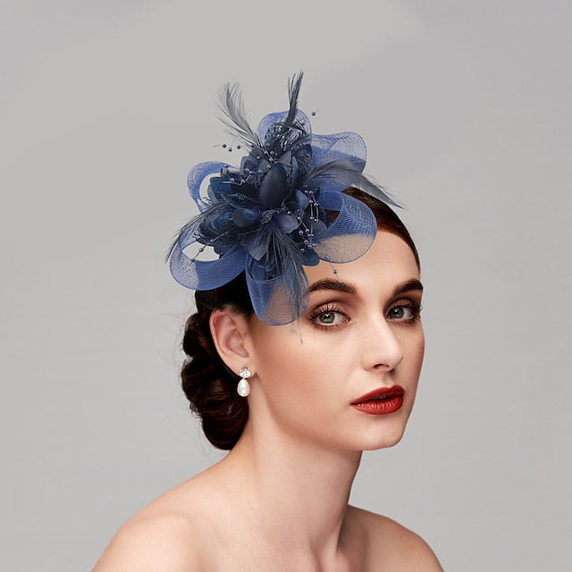 Fascinators Net Course de Chevaux de Mariage avec Coiffe en Plumes de Fleurs