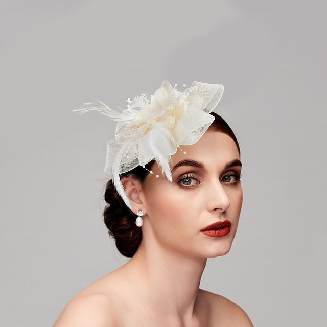 Fascinators Organza Polyester Party Soirée Vintage Élégant avec Coiffe en Plumes