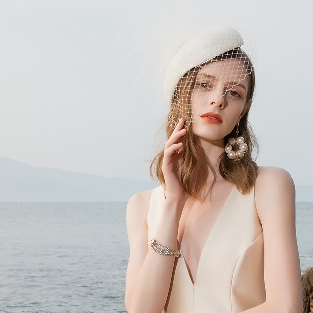 Fascinators Tulle Organza Holiday Beach Élégant Vintage avec Coiffe D'Épissure de Couleur Pure
