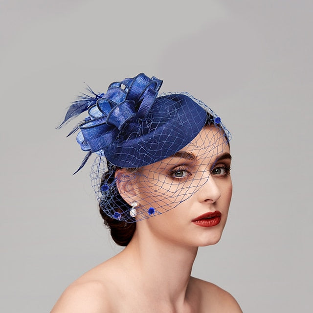 Fascinators Net Course de Chevaux de Mariage avec Coiffe en Plumes de Fleurs