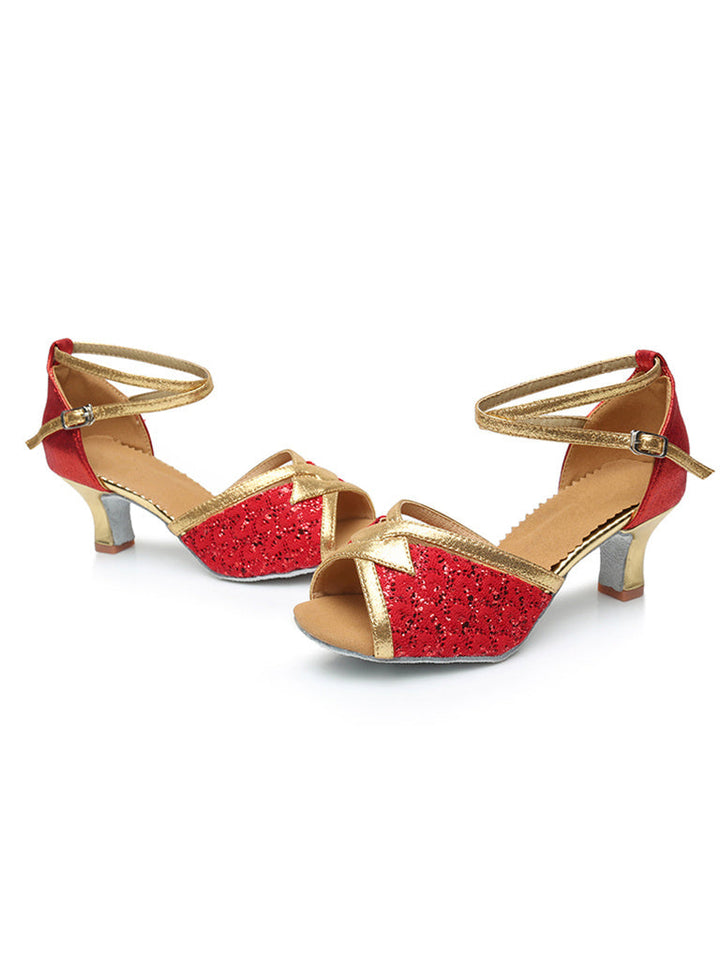 Chaussures de Danse pour Femmes, Chaussures de Danse Latine à Boucle, Talon Bas, Bout Ouvert, Paillettes