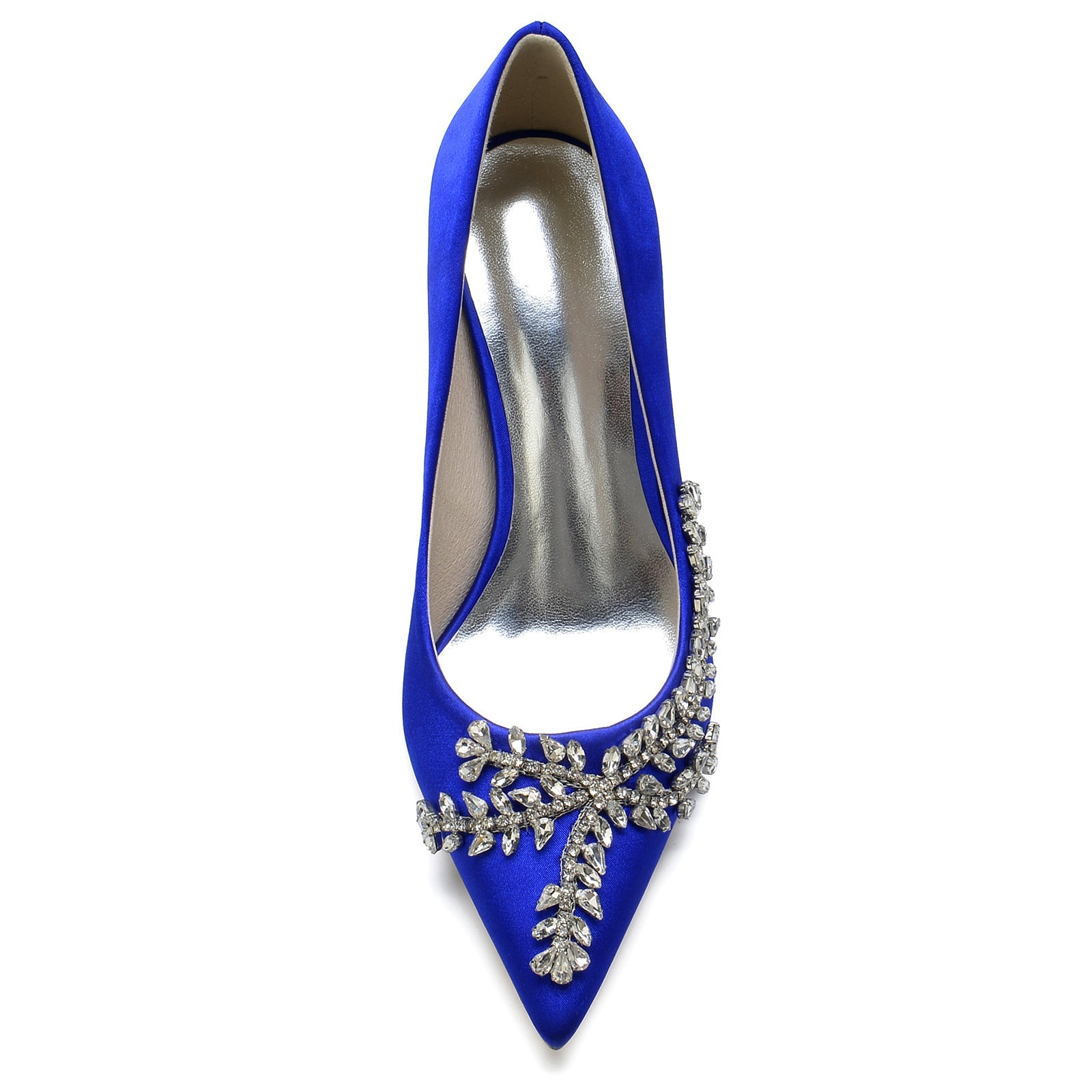 Chaussures de Mariage pour Femmes en Satin de Soie Bleu Royal, Chaussures de Mariée à Bout Pointu avec Talon Aiguille et Cristal