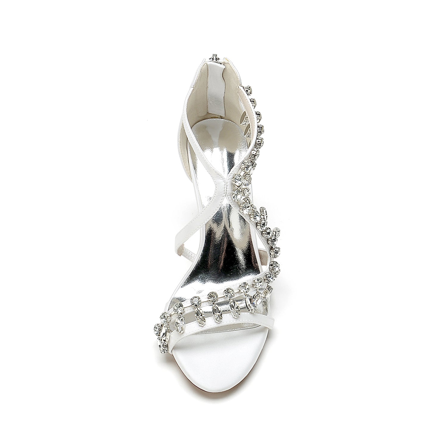 SH2022X48A Chaussures de Mariage pour Femmes à Bout Ouvert, Talon Épais, Boucle Croisée en Strass, Chaussures de Mariée