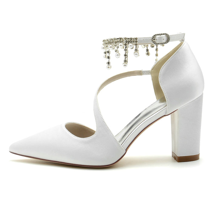 Chaussures de Mariage pour Femmes Chaussures de Mariée à Bout Pointu et à Lanières Épaisses avec Perles