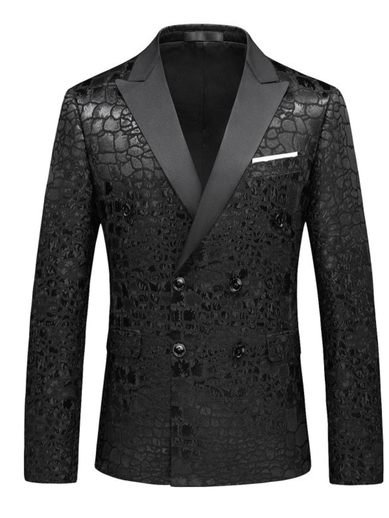 MON3121013W Costume de Mariage Vintage à Imprimé Floral Simple Noir pour Homme, Coupe Ajustée