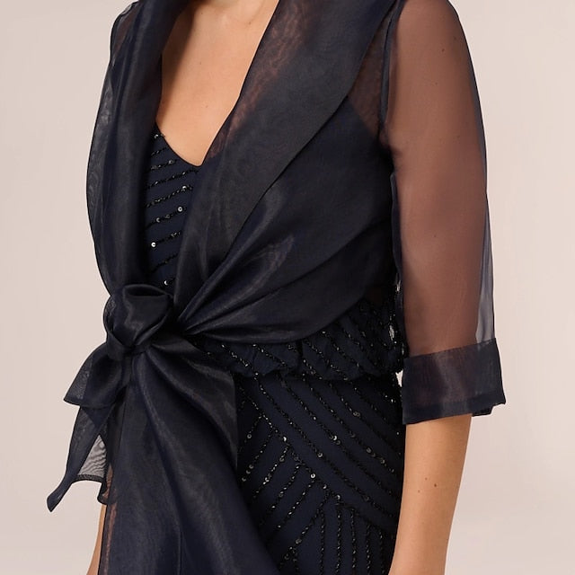 Élégante Enveloppe de Mariage en Tulle à Manches Mi-Longues avec Nœud Papillon