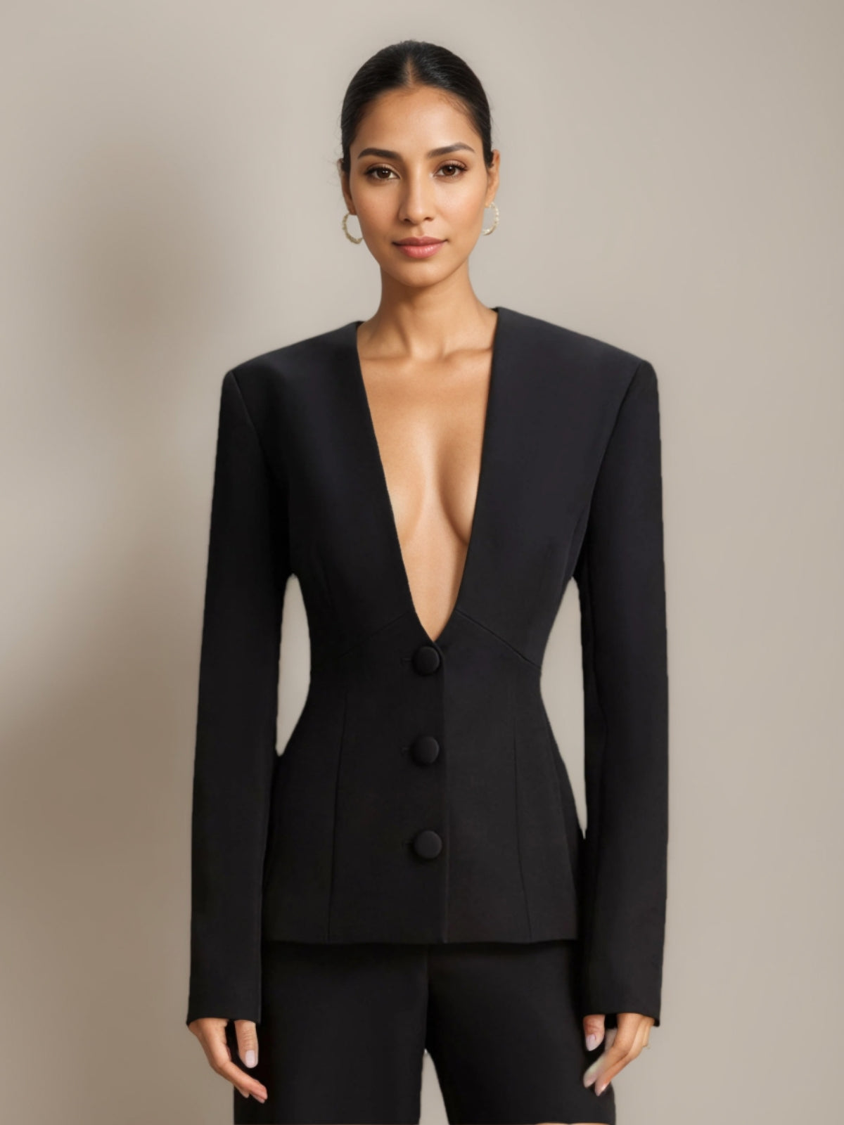 MONF8040258 Veste de costume cintrée à col plongeant en V
