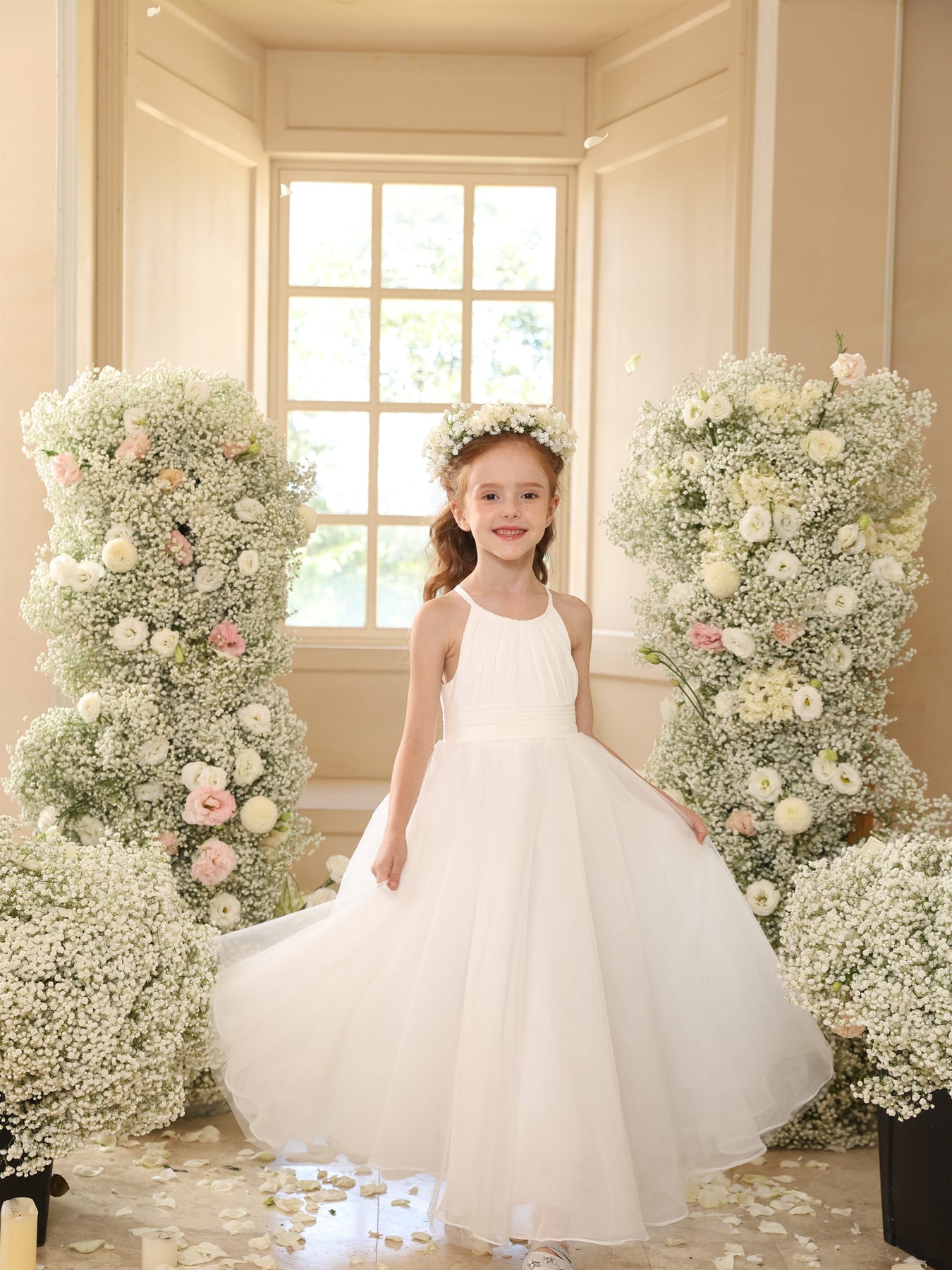 MON11112547 Robe de Bal à Encolure Dégagée Sans Manches, Longueur Cheville, avec Tulle