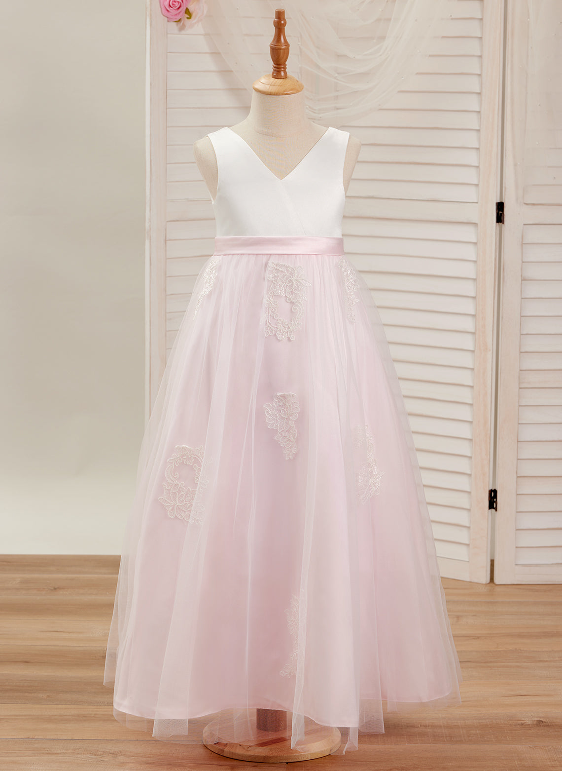 Robe Rose en Tulle Satiné Coupe A Jusqu'À la Cheville