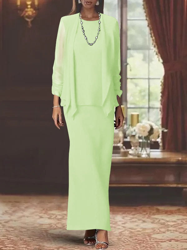 MON2311489 Robe de Mère de la Mariée Fourreau/Colonne à Col Rond et Manches Longues, Longueur Au Sol, avec Veste