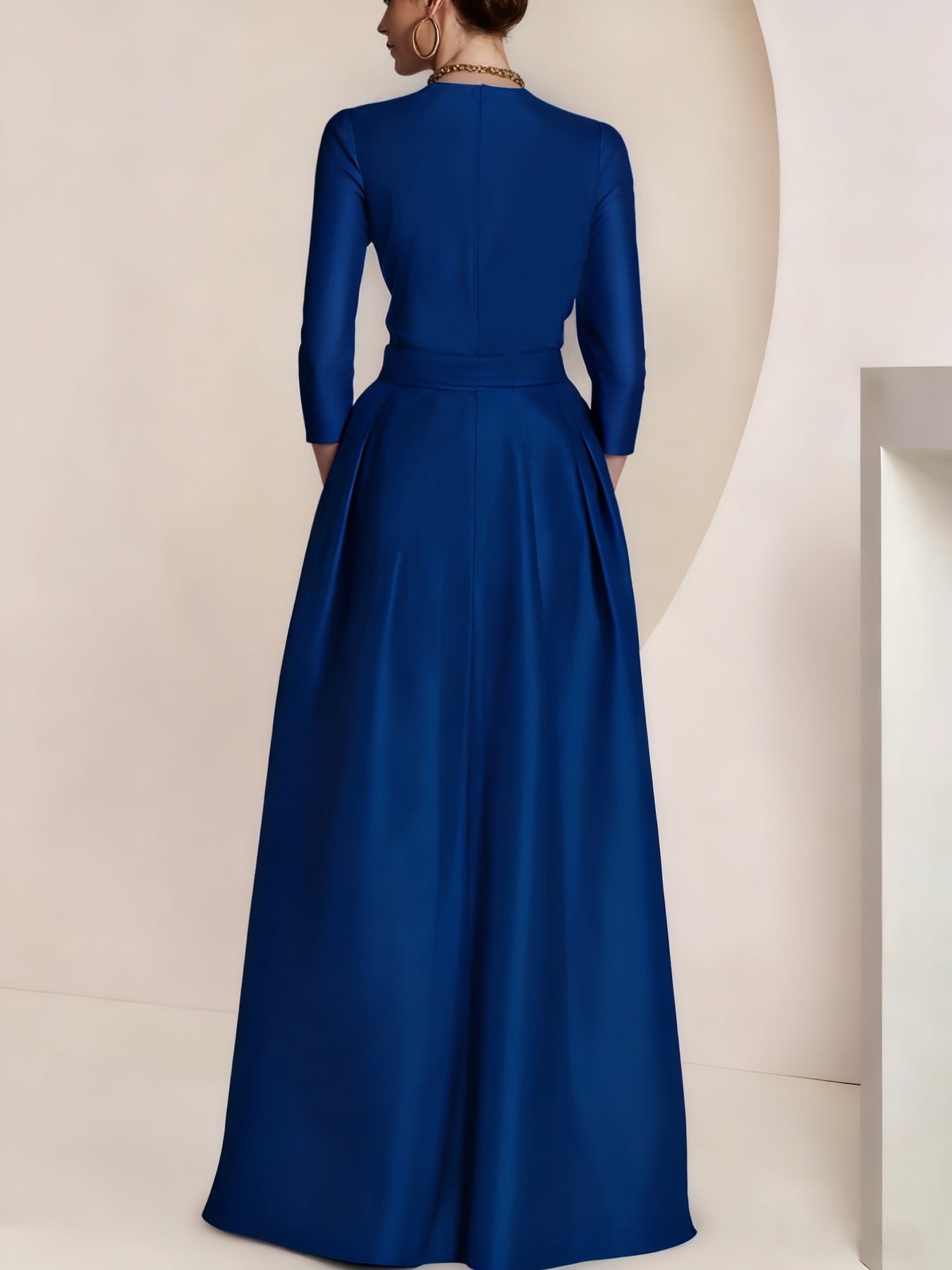 MON2311896 Robe de Mère de la Mariée Coupe A-Line/Princesse, Col en V, Manches 3/4, Longueur Au Sol, avec Fronces, Drapé, Devant Fendu, Fleurs et Fronces