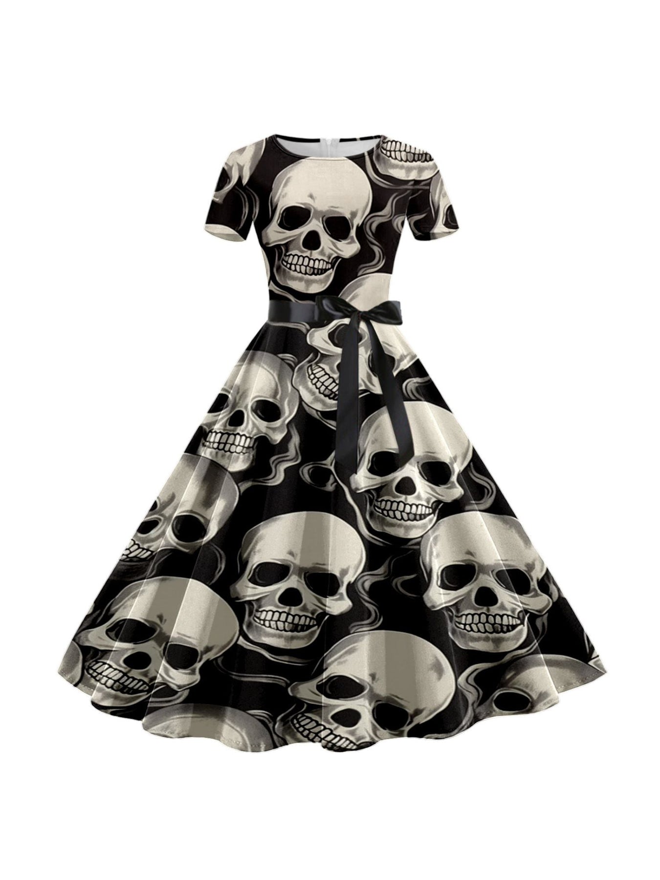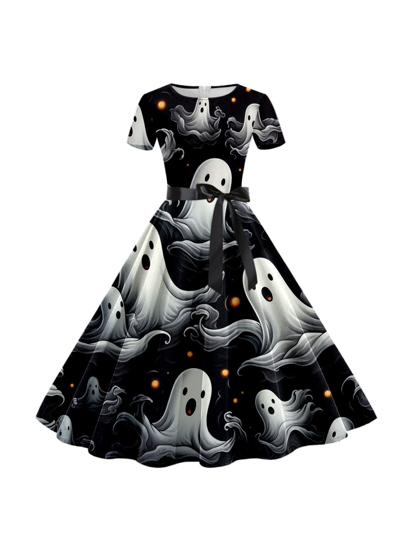 MON6041064W Robe de Costume de Spectacle Imprimée de Dessin Animé D'Halloween à Col Rond et Manches Courtes de Forme Trapèze/Princesse
