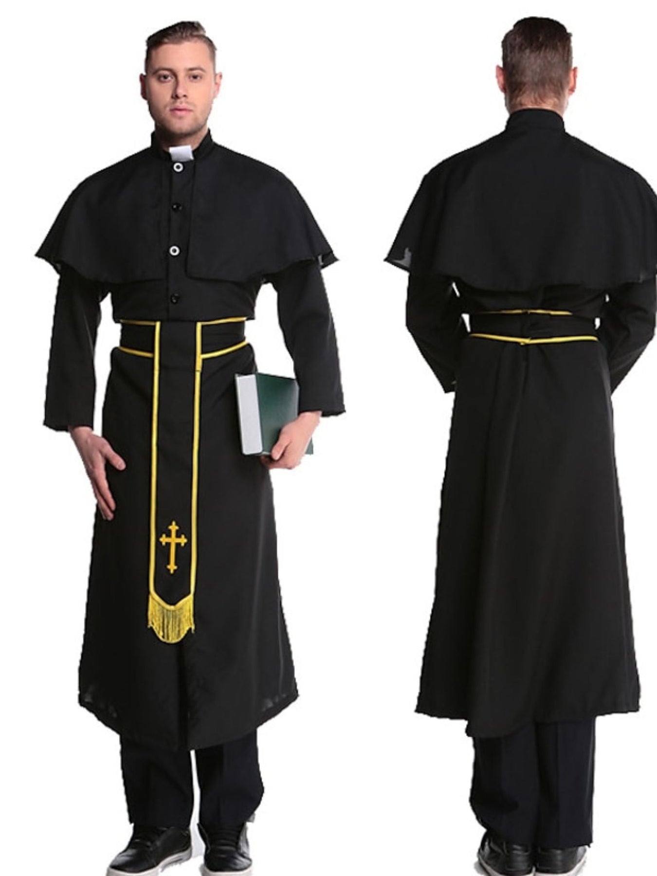 MON6041099W Couple Prêtre Nonne Couple Noir Doré Halloween Mascarade Costume Vintage