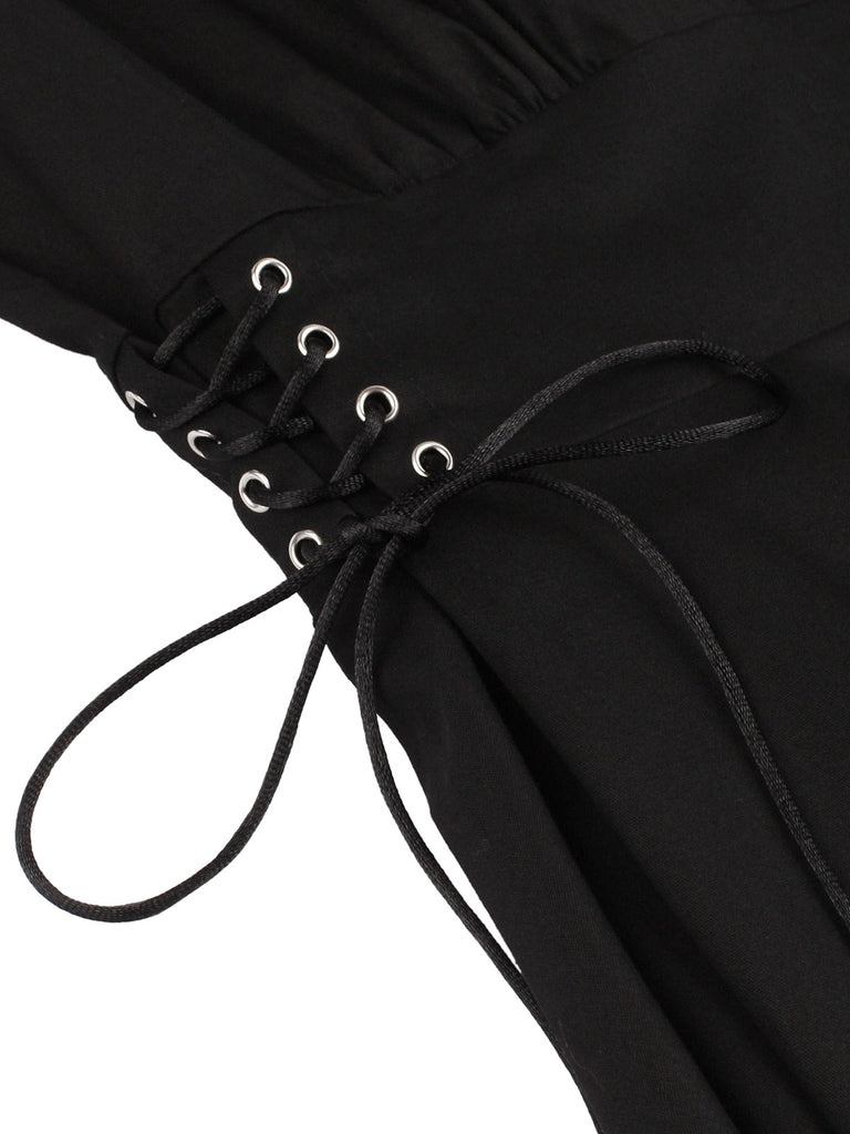 Robe de Costume D'Halloween à Manches Courtes et Col Carré, Coupe A-Line/Princess, Longueur Genou
