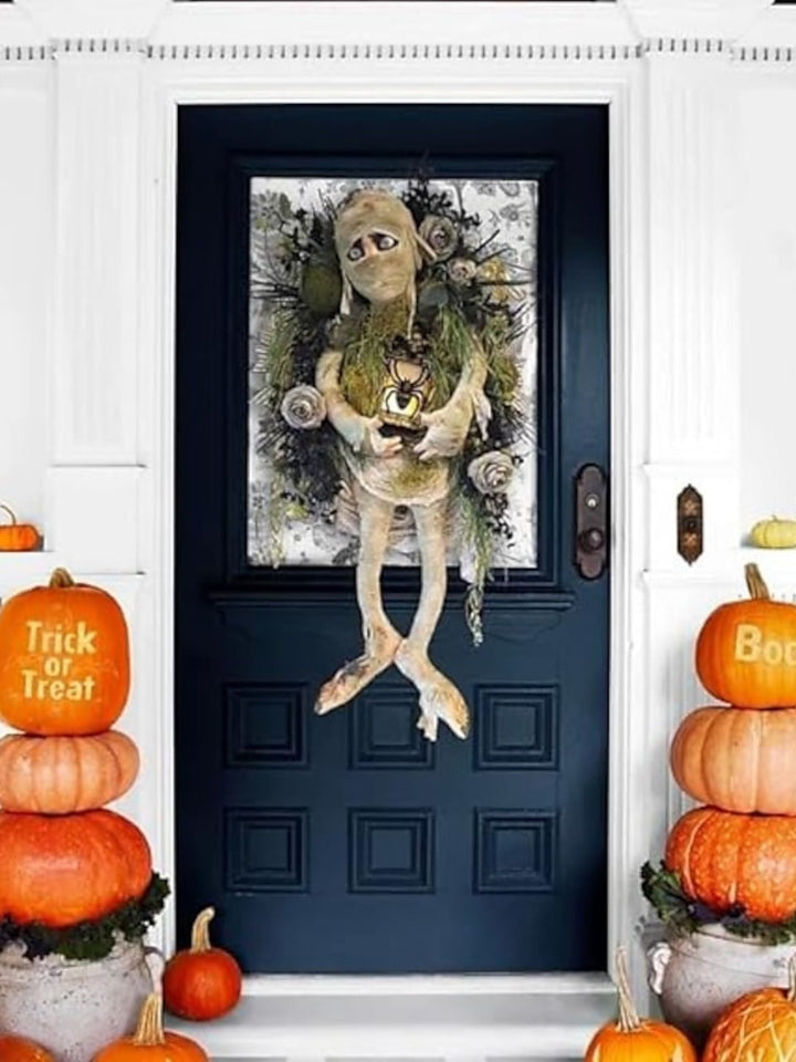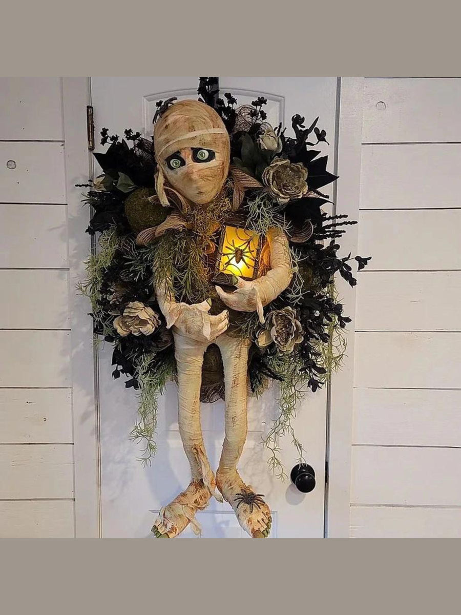 Couronne de Momie Effrayante pour Halloween - Décoration à Suspendre - Accessoires Ronds