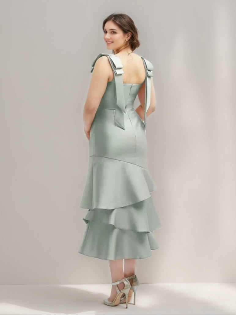 MON141601 Ligne A/Princesse Carré Encolure Longueur de Thé Robes d'Invité de Mariage avec Froufrous & Noeud Papillon Les Bretelles
