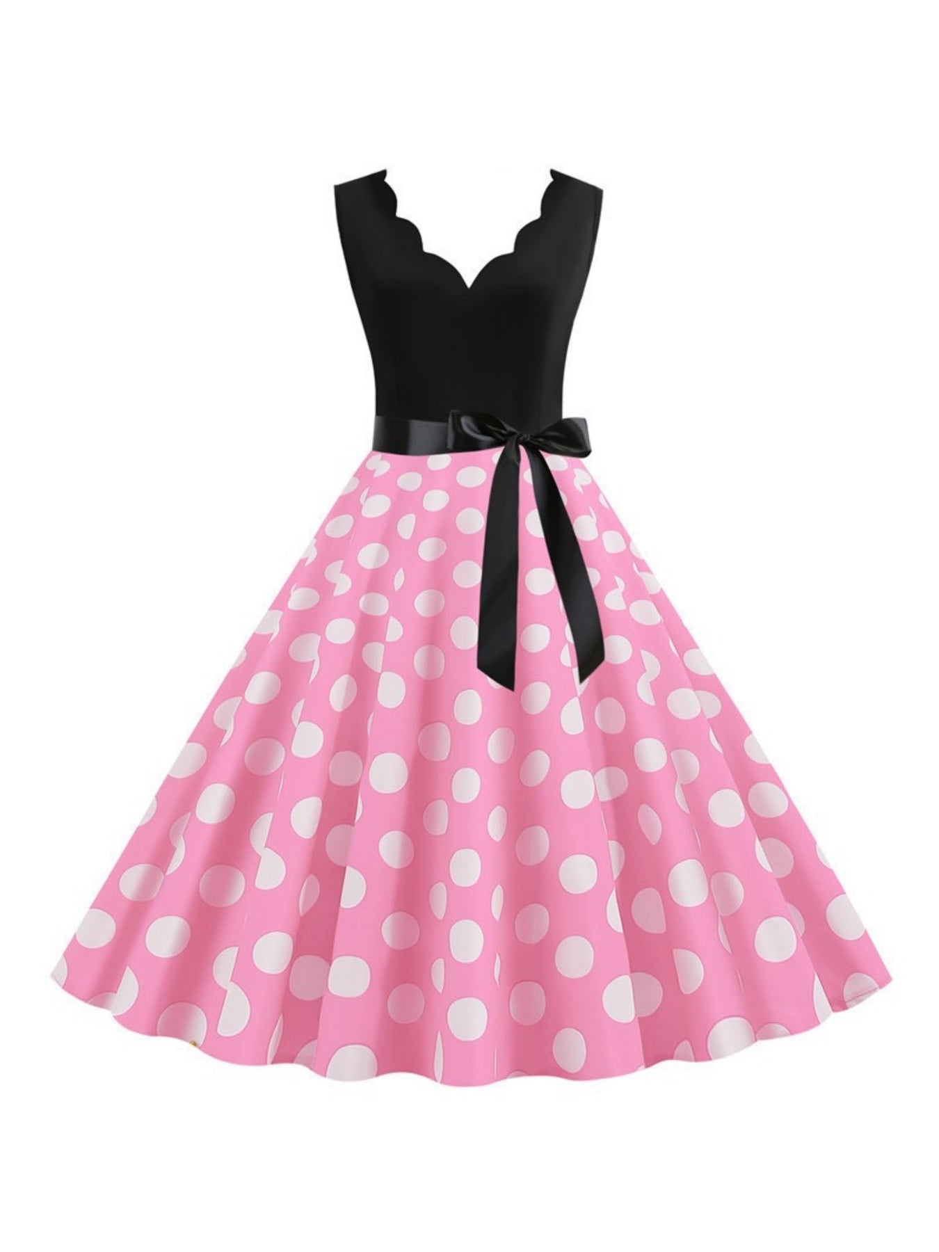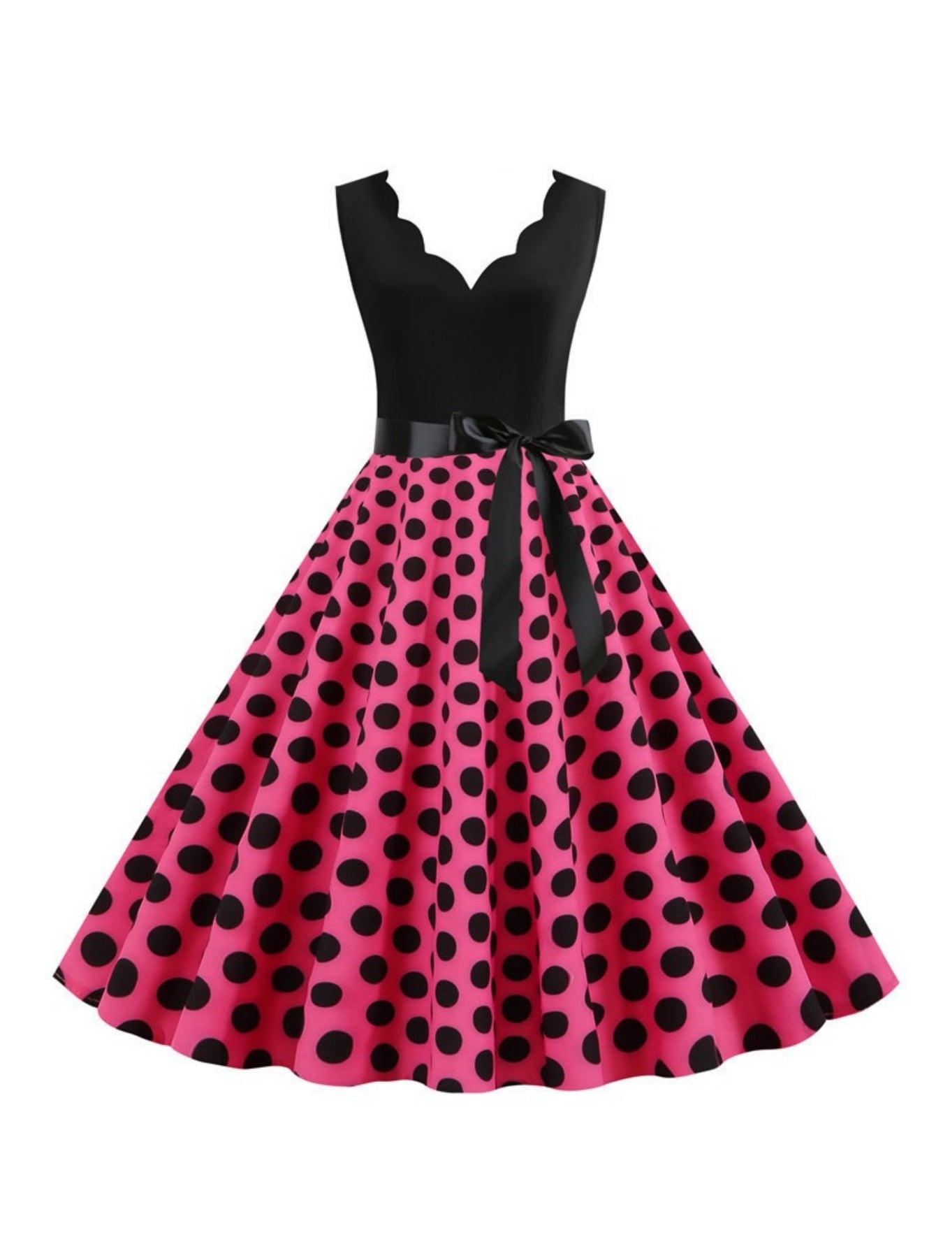 MON341966 Robe Vintage Trapèze/Princesse à Col en V Sans Manches et Longueur Genou