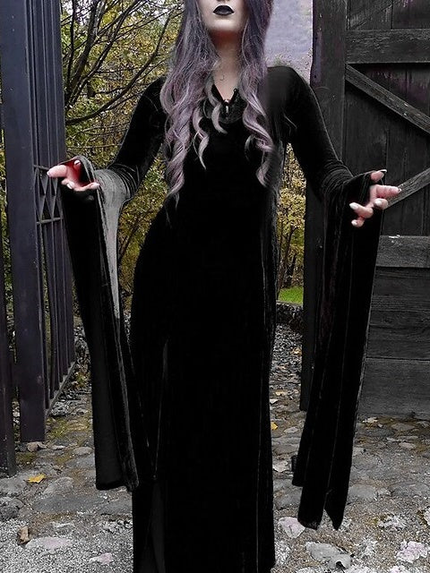 MON341973 Robe Vintage Trapèze/Princesse à Manches Longues et Col Bijou, Longueur Au Sol, avec Fente Sur le Côté