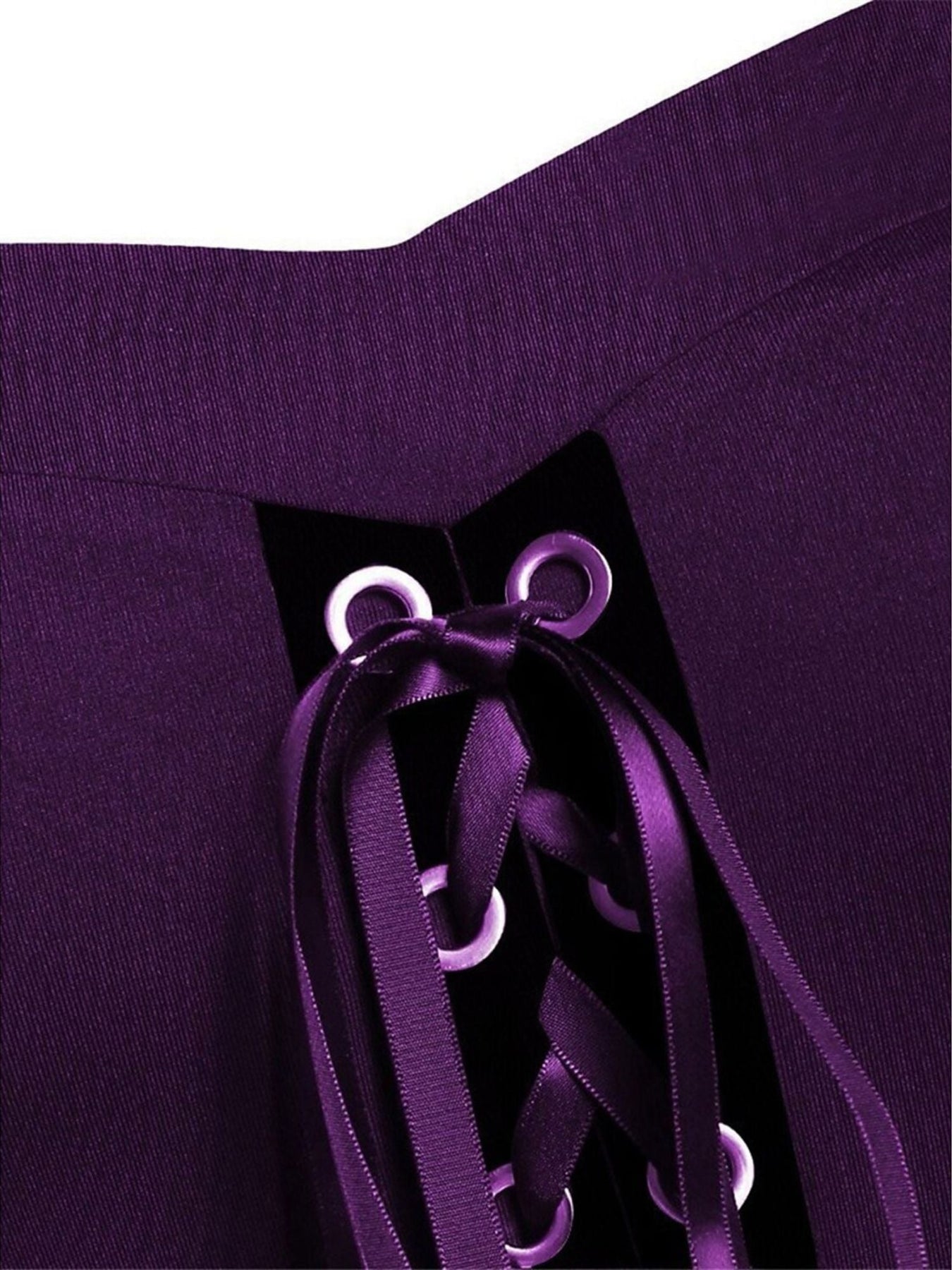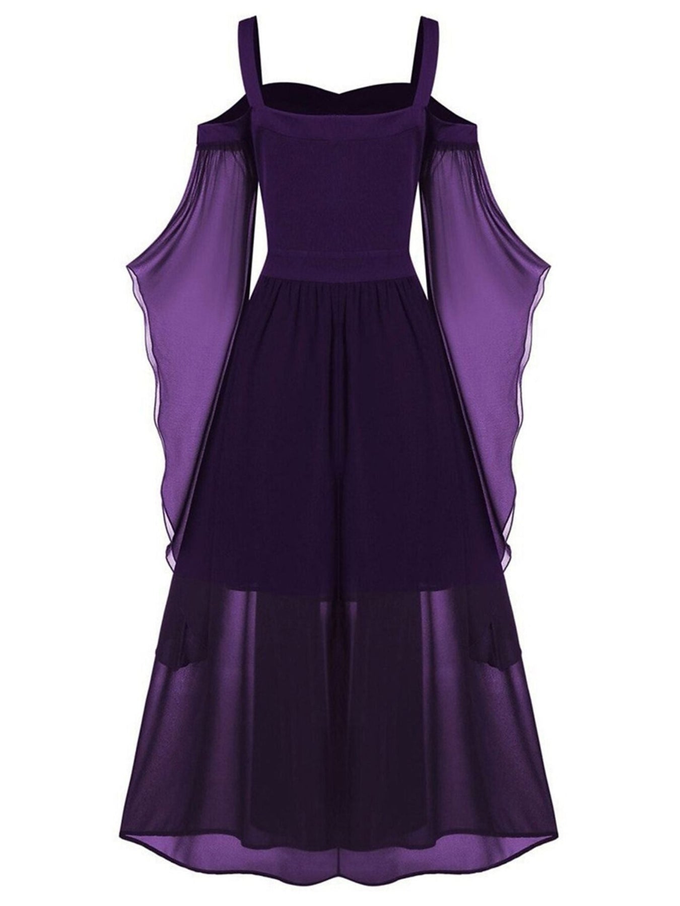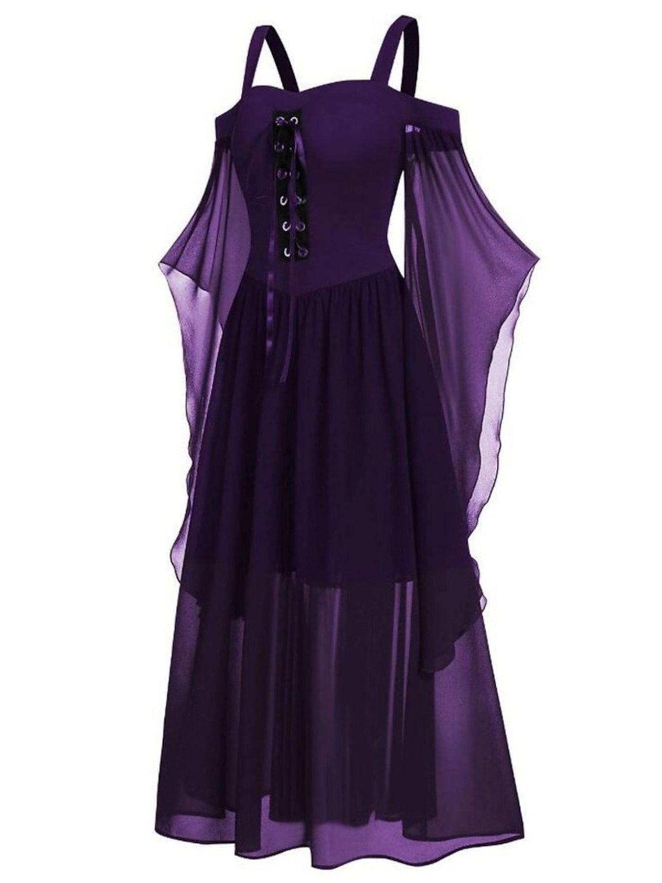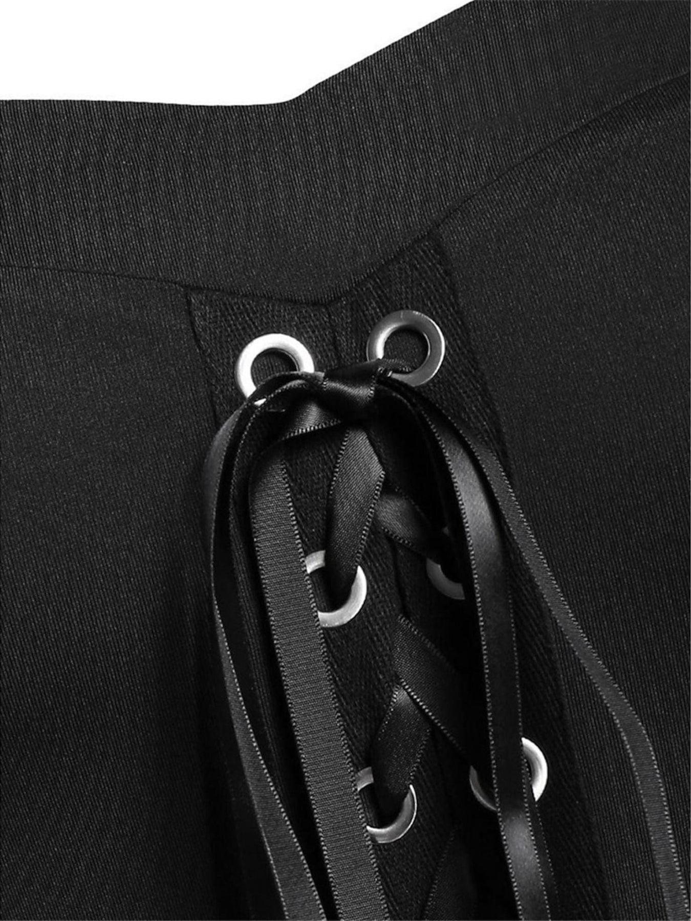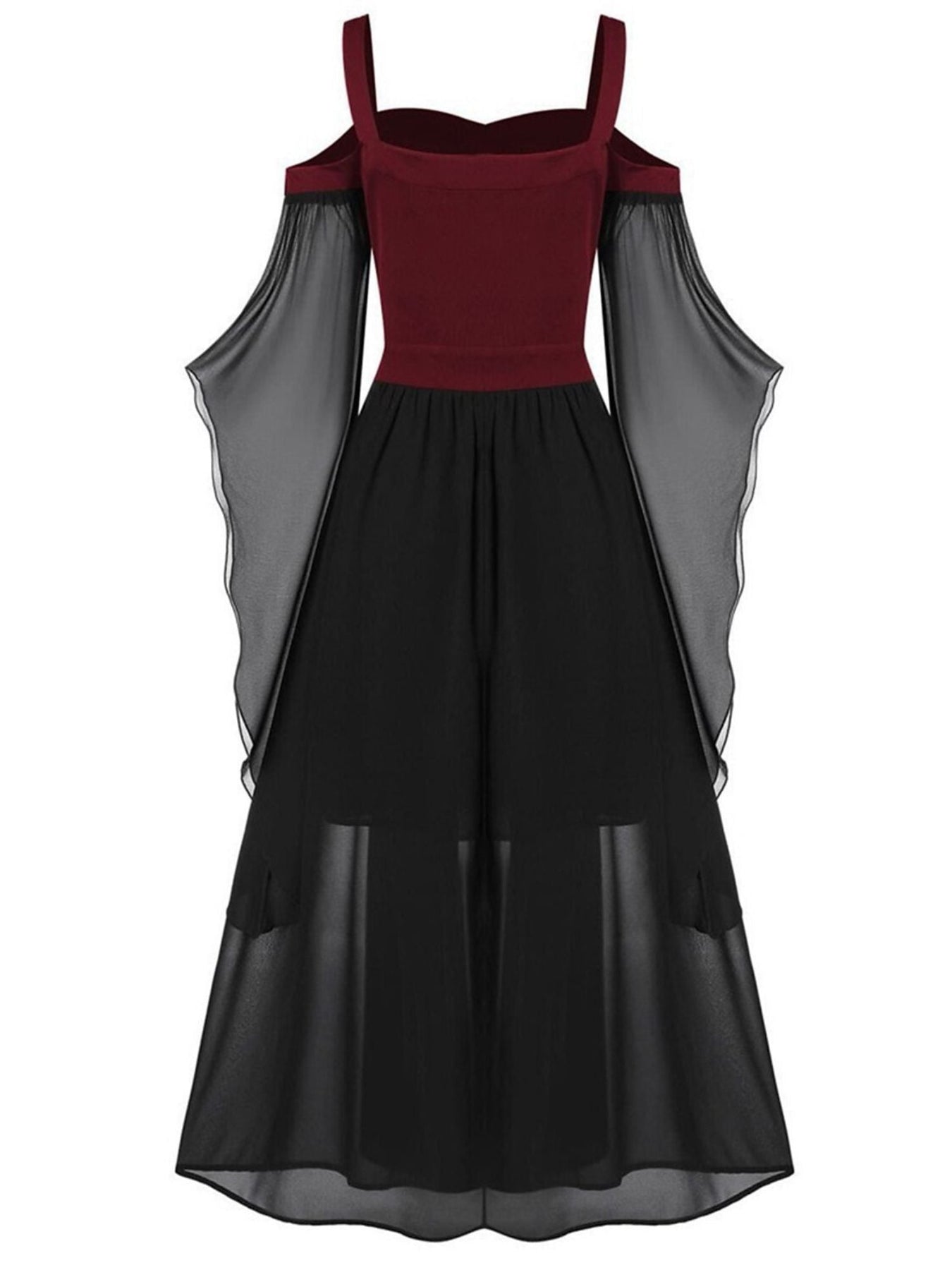 MON6041087W Robe Noire Trapèze/Princesse à Manches 3/4 et Col en Cœur, Longueur Genou, Style Rétro Gothique pour Halloween