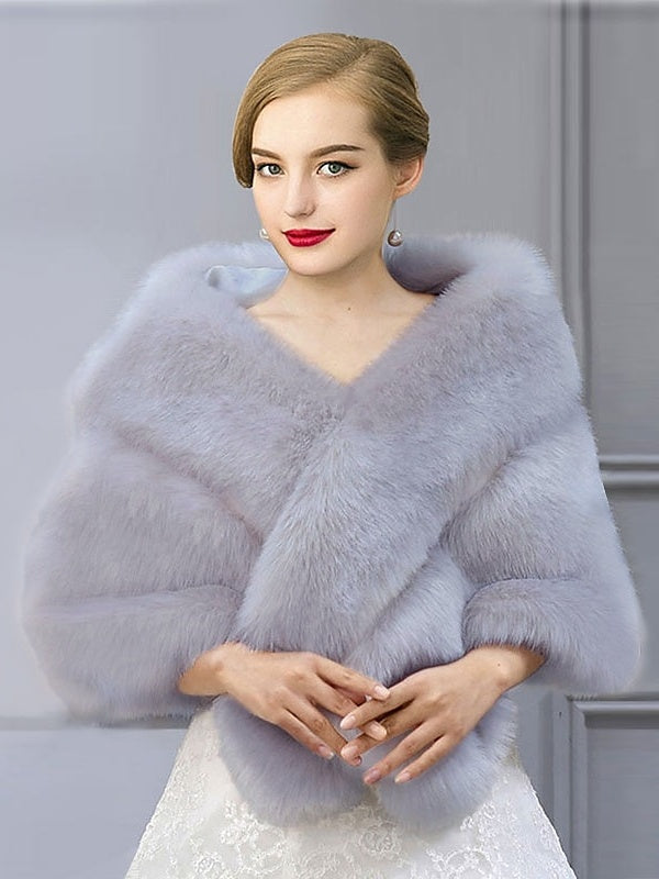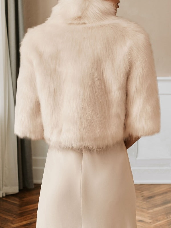 Écharpe de Mariage Décontractée en Fausse Fourrure Sans Manches de Couleur Unie pour Femmes