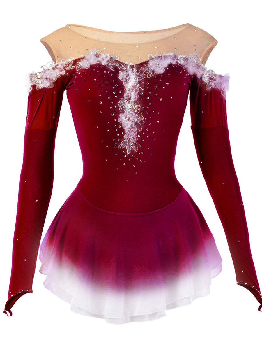 MON4041346W Robe de Patinage Artistique pour Femmes et Filles, Vêtements de Danse à Haute Élasticité, Robe de Patinage Sur Glace à Manches Longues