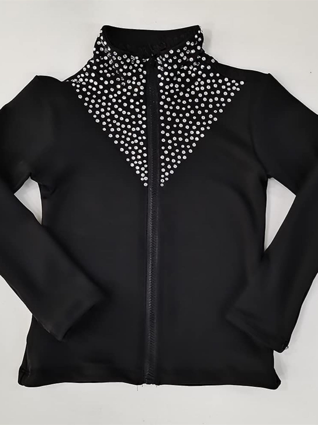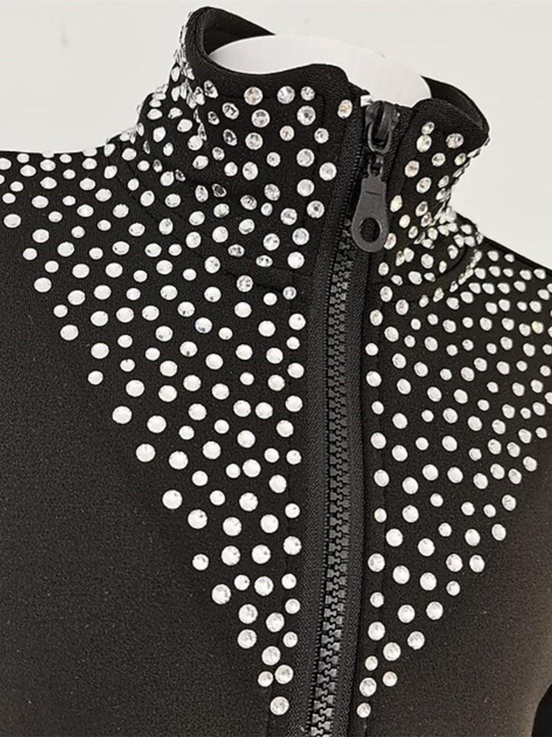 MON4041427W Robe de Patinage Artistique pour Femmes et Filles, Veste en Cristal/Strass, Manches Longues, Vêtements de Danse, Patinage Sur Glace
