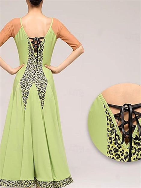 Robe de Danse de Salon pour Femmes, Imprimé Léopard, Épissure, Performance, Soirée, Manches Courtes