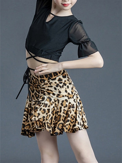 MON4041496W Jupes de Danse pour Enfants à Manches Courtes en Polyester Imprimé Léopard pour Filles