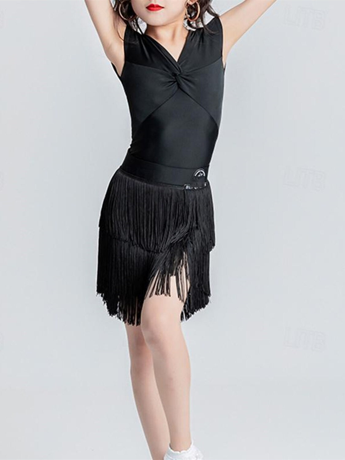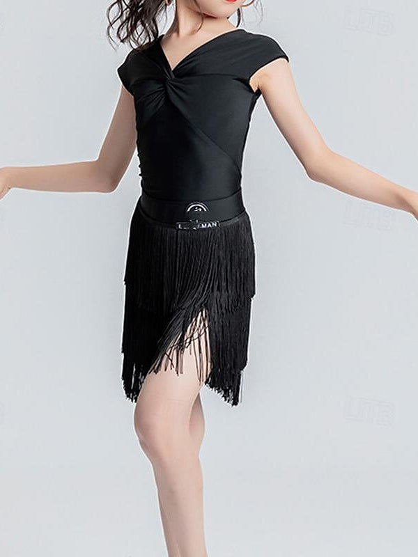 MON4041707W Jupes de Danse pour Enfants à Pampilles, Col en V, Sans Manches, Chinlon, pour Filles
