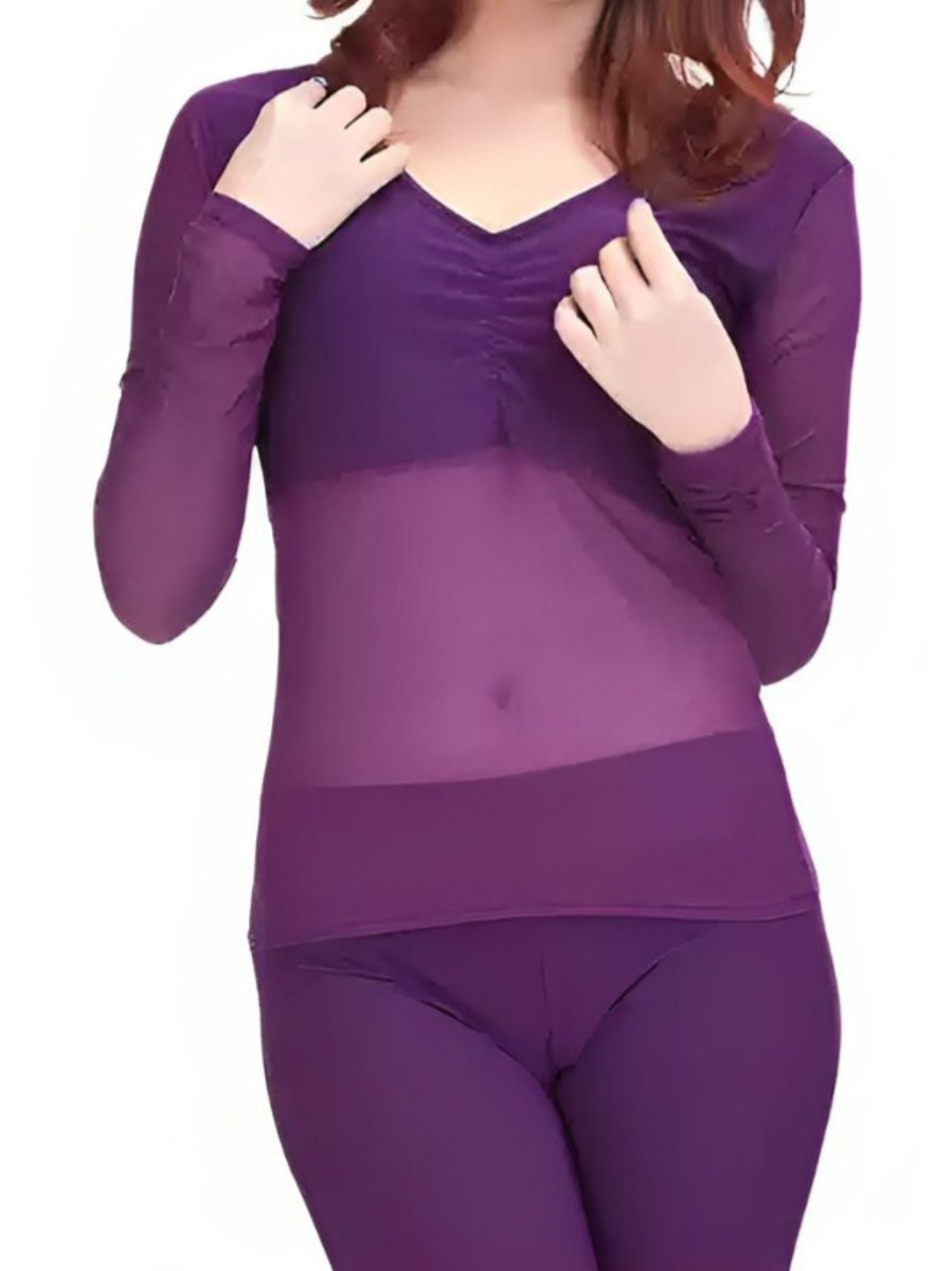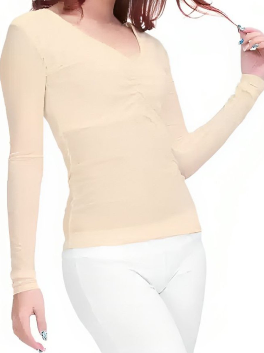 Costume de Danse Du Ventre à Col en V et Manches Longues Froncées avec Haut Long