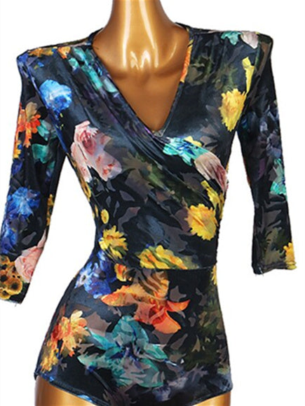 Justaucorps de Danse Latine/Combinaison à Manches Courtes en Élasthanne pour Femme