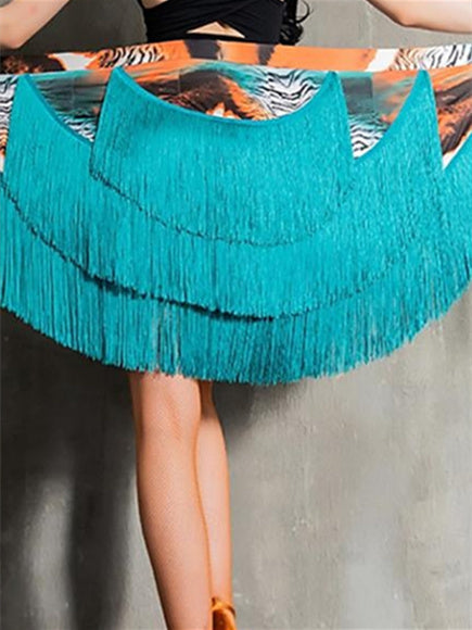 Jupes de Danse de Salon de Danse Latine, Imprimé Léopard, Pompon, Entraînement de Performance pour Femmes, Haut en Élasthanne