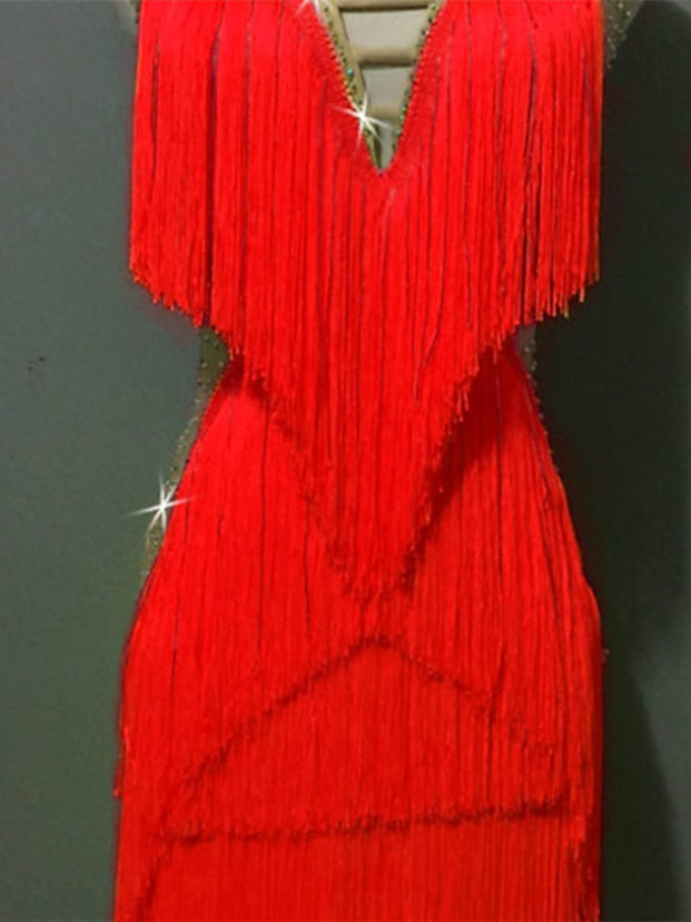 Robe de Danse Latine en Dentelle à Franges et Pompons pour Femme® - Sans Manches - pour Entraînement et Performance
