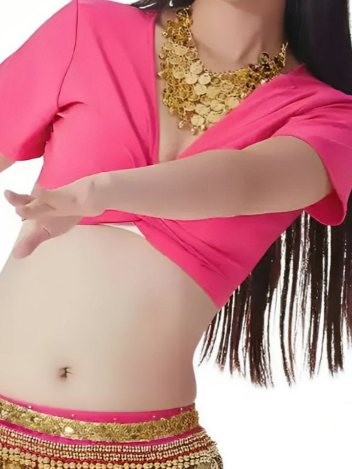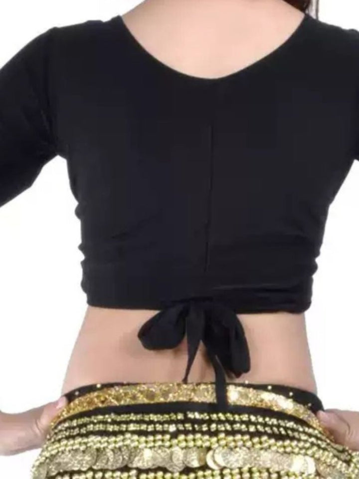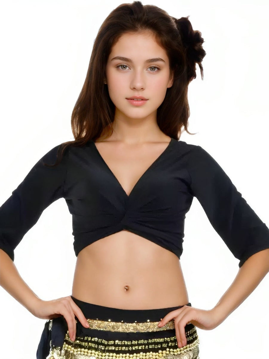 Costume de Danse Du Ventre à Col en V et Manches 3/4 en Coton Froncé avec Haut Court