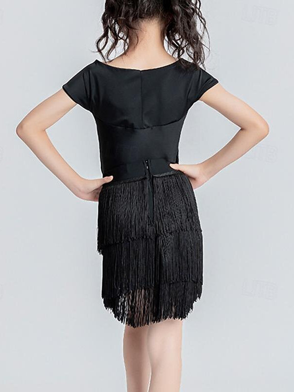 Robe de Danse Latine pour Enfants, Tenue de Danse Sans Manches en Térylène pour Filles